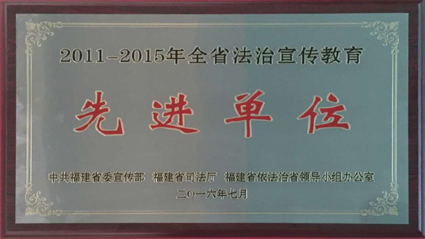 10月12日,在福建省國資委全系統(tǒng)“六五”普法總結(jié)表彰暨“七五”普法動員部署大會上,公司榮獲“2011-2015年全省法治宣傳教育先進單位”榮譽稱號,此項評選活動由福建省委宣傳部、省司法廳、省依法治省辦組織。