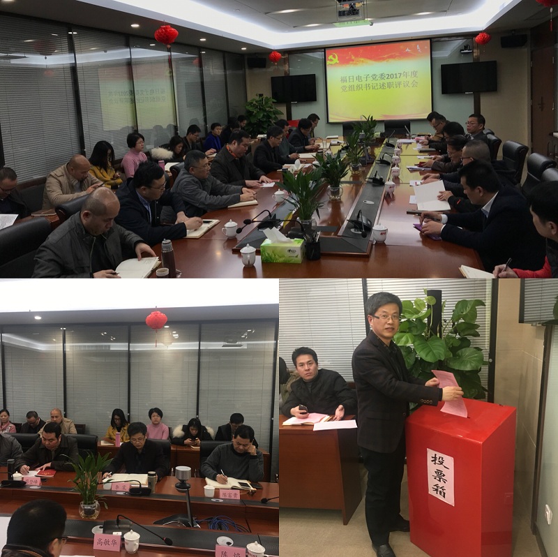 2018年1月25日下午,福日電子黨委召開2017年度黨組織書記抓基層黨建工作述職評(píng)議會(huì),公司黨委書記李震主持會(huì)議。會(huì)上福日實(shí)業(yè)公司黨支部、福順微電子公司黨支部、光電事業(yè)部黨支部、機(jī)關(guān)黨支部等6個(gè)所屬黨組織書記,圍繞一年來抓基層黨建工作取得的成效、今后努力方向等方面分別作了現(xiàn)場(chǎng)述職或書面述職。公司領(lǐng)導(dǎo)班子成員、所屬企業(yè)、事業(yè)部黨支部書記及基層黨員干部職工代表30余人到會(huì)聽取了述職并進(jìn)行了認(rèn)真評(píng)議。