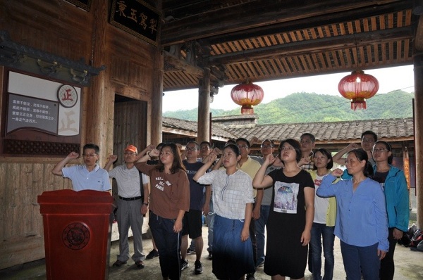參觀完舊址后,在黨委書記李震的帶領(lǐng)下,新老黨員面對舊址大廳鮮紅的黨旗莊嚴宣誓。通過組織新黨員進行入黨宣誓和老黨員重溫入黨誓詞行動,讓黨員“不忘初心、牢記使命”,不斷保持共產(chǎn)黨員的先進性,以更加飽滿的熱情投身各自工作,切實發(fā)揮先鋒模范作用,永葆共產(chǎn)黨員的政治本色。
