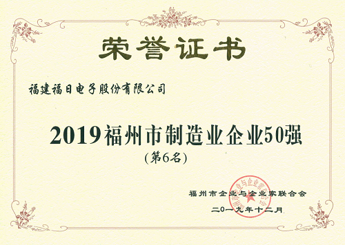 2019年12月27日,2019福州市制造業(yè)企業(yè)50強(qiáng)發(fā)布暨福州市企業(yè)與企業(yè)家聯(lián)合會(huì)年會(huì)在福州召開。會(huì)議發(fā)布“2019福州市制造業(yè)企業(yè)50強(qiáng)”名單并授牌,福建福日電子股份有限公司入選該名單,位列第6名。福日電子黨委書記李震受邀參會(huì)。