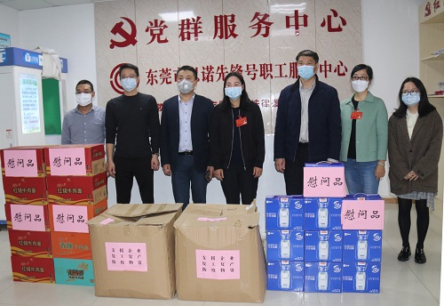 東莞市大朗鎮(zhèn)人大、總工會(huì)等單位向以諾通訊贈(zèng)送防疫保障物資