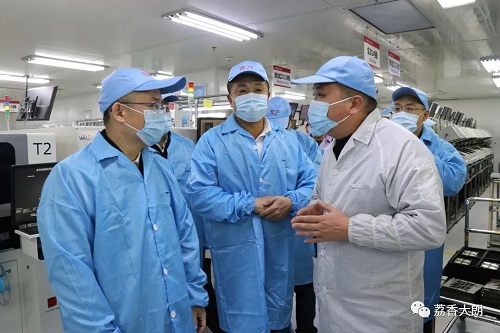 萬卓培一行在大朗鎮(zhèn)相關(guān)負(fù)責(zé)人的陪同下,前往福日電子二級控股子公司廣東以諾通訊有限公司開展調(diào)研,深入企業(yè)車間,了解企業(yè)生產(chǎn)情況以及未來發(fā)展規(guī)劃,并就企業(yè)提出的生產(chǎn)經(jīng)營中問題和困難進(jìn)行了交流。