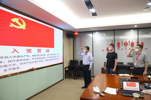 活動中,黨員代表和預(yù)備黨員代表分別重溫了入黨志愿書,講述了自己加入中國共產(chǎn)黨的心路歷程。“我志愿加入中國共產(chǎn)黨,擁護黨的綱領(lǐng),遵守黨的章程……”在莊嚴(yán)肅穆的氛圍中,全體黨員在王忠偉書記帶領(lǐng)下,舉起右手重溫入黨誓詞。這是初心使命的再宣誓,接續(xù)奮斗的再出發(fā)。