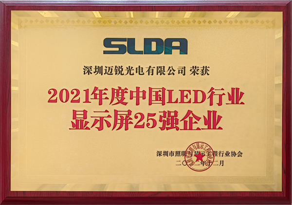 近日,福日電子成員企業(yè)邁銳光電榮獲“2021年度中國LED行業(yè)顯示屏25強企業(yè)”及“《Mini LED室內(nèi)商用顯示屏》優(yōu)秀參編團體”兩項行業(yè)榮譽。