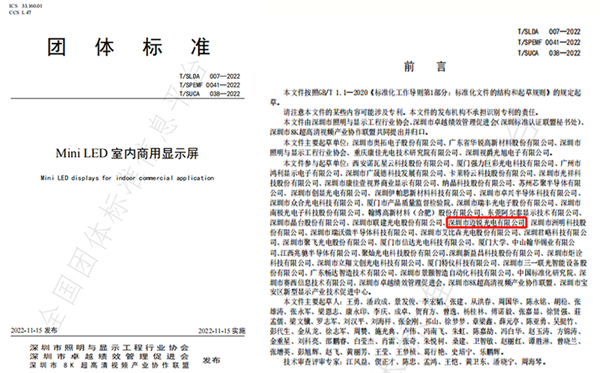 T/SLDA 007—2022《Mini LED室內(nèi)商用顯示屏》團體標準在2022年11月15日已發(fā)布并且正式實施。該標準研制了Mini LED室內(nèi)商用顯示屏各項要求,為產(chǎn)品技術創(chuàng)新和提升產(chǎn)品質(zhì)量水平給出了標桿。邁銳光電作為該標準的起草單位,在積極引導行業(yè)走向標準化和規(guī)范化的同時,強化標準“硬約束”,保障產(chǎn)品高品質(zhì),目前公司推出的Mini LED系列產(chǎn)品已為多個運用場景提供技術解決方案及優(yōu)質(zhì)的產(chǎn)品服務。