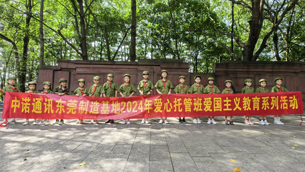 此外,中諾通訊黨工團(tuán)建設(shè)部特別策劃了“愛國主義教育系列活動”。孩子們參觀了廣東東江縱隊(duì)紀(jì)念館,深入了解革命先烈的英勇事跡,激發(fā)了他們的愛國熱情;學(xué)唱紅歌《我的祖國》,用稚嫩的歌聲表達(dá)對祖國的祝福;學(xué)習(xí)軍姿軍禮,在公司退伍軍人唐有伍的指導(dǎo)下,孩子們通過站軍姿、敬軍禮,向祖國致以崇高的敬意。沉浸式的教育模式,讓孩子們在“學(xué)中玩、玩中學(xué)”中增長了見識,體驗(yàn)了樂趣,在他們幼小的心靈里種下了愛國的種子。活動結(jié)束后,孩子們還用文字和畫筆記錄了自己的所見所感,色彩描繪出心中的祖國。此次托管班不僅為職工子女提供了優(yōu)質(zhì)的暑期托管服務(wù),更在寓教于樂中激發(fā)了孩子們的愛國情懷,成為東莞托管班的一大特色。
